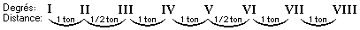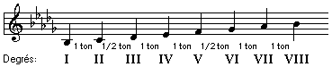 Dans le graphique ci-dessus, on peut remarquer que dans la gamme mineure naturelle, le demi-ton diatonique se trouve entre le deuxième et troisième degré et entre le cinquième et sixième degré.