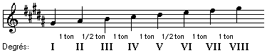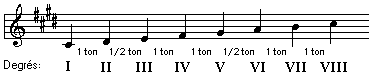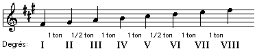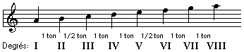 La gamme de La mineur ancien ne contient aucune altération et elle peut être utilisée comme modèle pour la construction des autre gammes du mode mineur ancien.