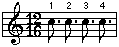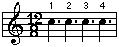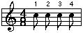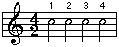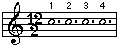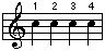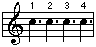 Une mesure vaut généralement deux, trois ou quatre temps et chaque temps peut être représenté par une ronde, une blanche, une noire ou une croche. Ainsi, on peut donc former un total de 12 mesures simples.