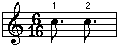 Dans les mesures composées, le chiffre inférieur (dénominateur) sert à indiquer la figure de note qui correspond à 1/3 de temps. Le chiffre inférieur indique l'unité de tiers de temps.