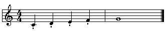 Le staccato est un signe de durée qui se place au-dessus ou au-dessous des notes. Il indique que ces notes doivent être détachées les unes des autres. Il enlève à la note la moitié de sa valeur.