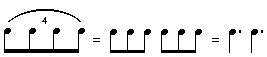 Le quartolet est la réunion de deux duolets voisins. Il est indiqué par le chiffre 4 placé au-dessus ou au-dessous du groupe de notes. Le quartolet a la même valeur que les deux duolets qu'il représente.
