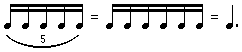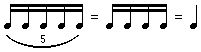 Leur valeur équivaut à celle du groupe régulier le plus rapproché. Ainsi, dans une mesure simple, un groupe de 5 doubles-croches (quintolet) vaut 4 doubles-croches ou 1 noire. Dans une mesure composée, ce même groupe vaut 6 doubles-croches ou 1 noire pointée.
