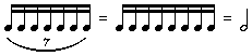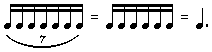 Dans une mesure simple, un groupe de 7 doubles-croches (septolet) vaut 8 doubles-croches ou une blanche. Dans une mesure composée, ce même groupe vaut 6 doubles-croches ou une noire pointée.